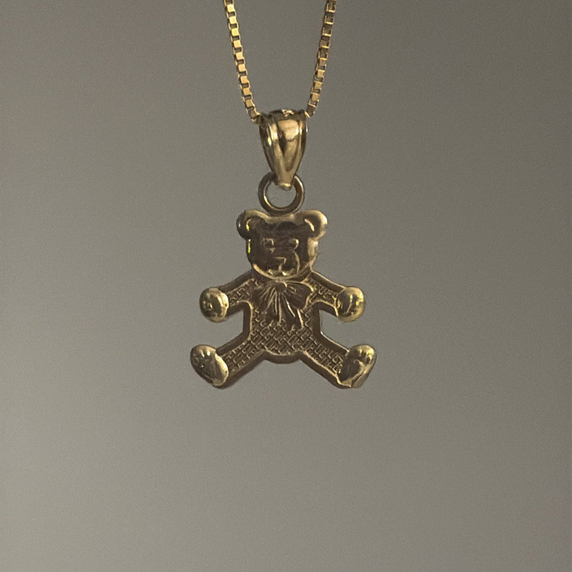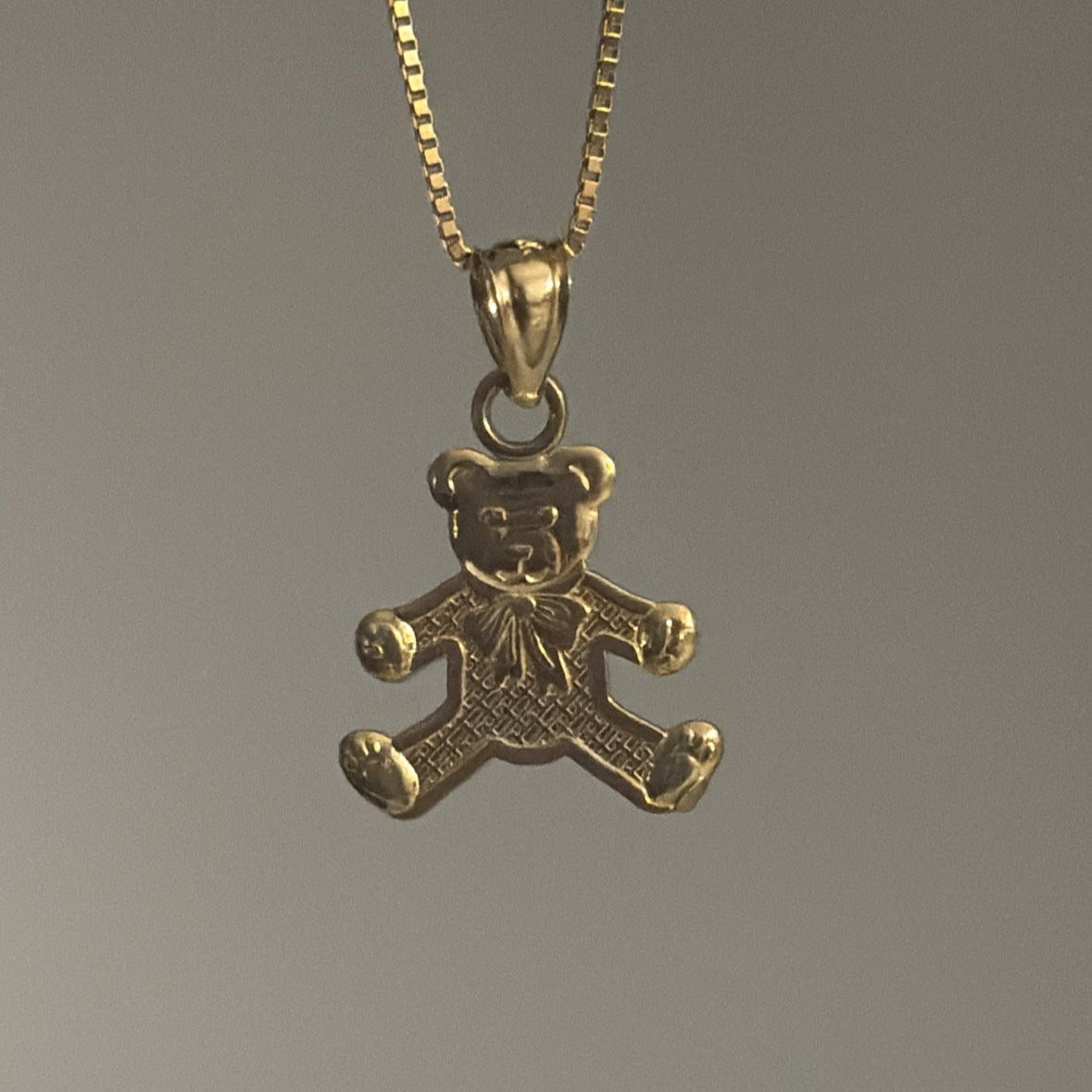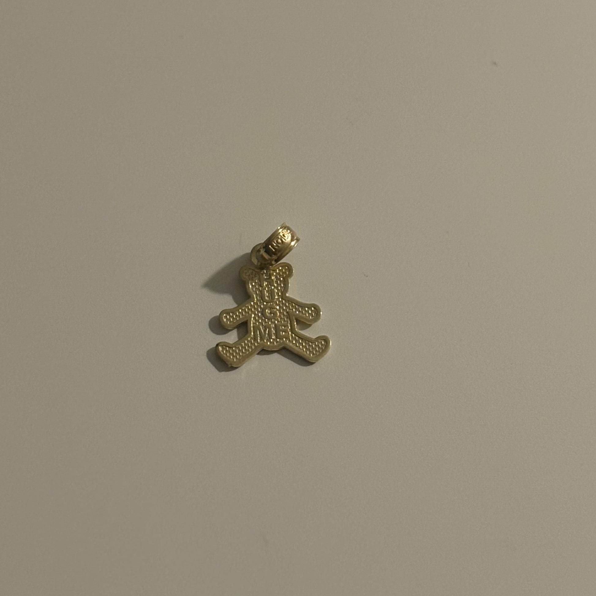 Adorable and full of charm, this 10K solid gold baby bear pendant is a sweet keepsake. The front features a detailed teddy bear design, while the back is engraved with the heartfelt words “Hug Me.”