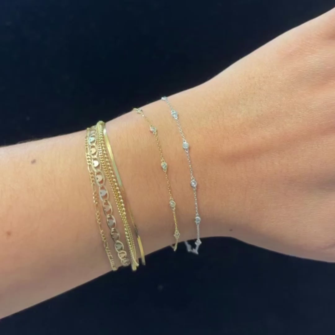 A delicate piece you’ll reach for every day. This 14k solid gold diamond by-the-yard bracelet features 10 bezel-set diamonds totaling 0.25 carats, evenly spaced along a fine gold chain. Designed for versatility and comfort, it can be worn at 6”, 6.5”, or 7” thanks to the built-in extender. Lightweight, timeless, and effortlessly elegant — perfect worn solo or layered with your favorites.