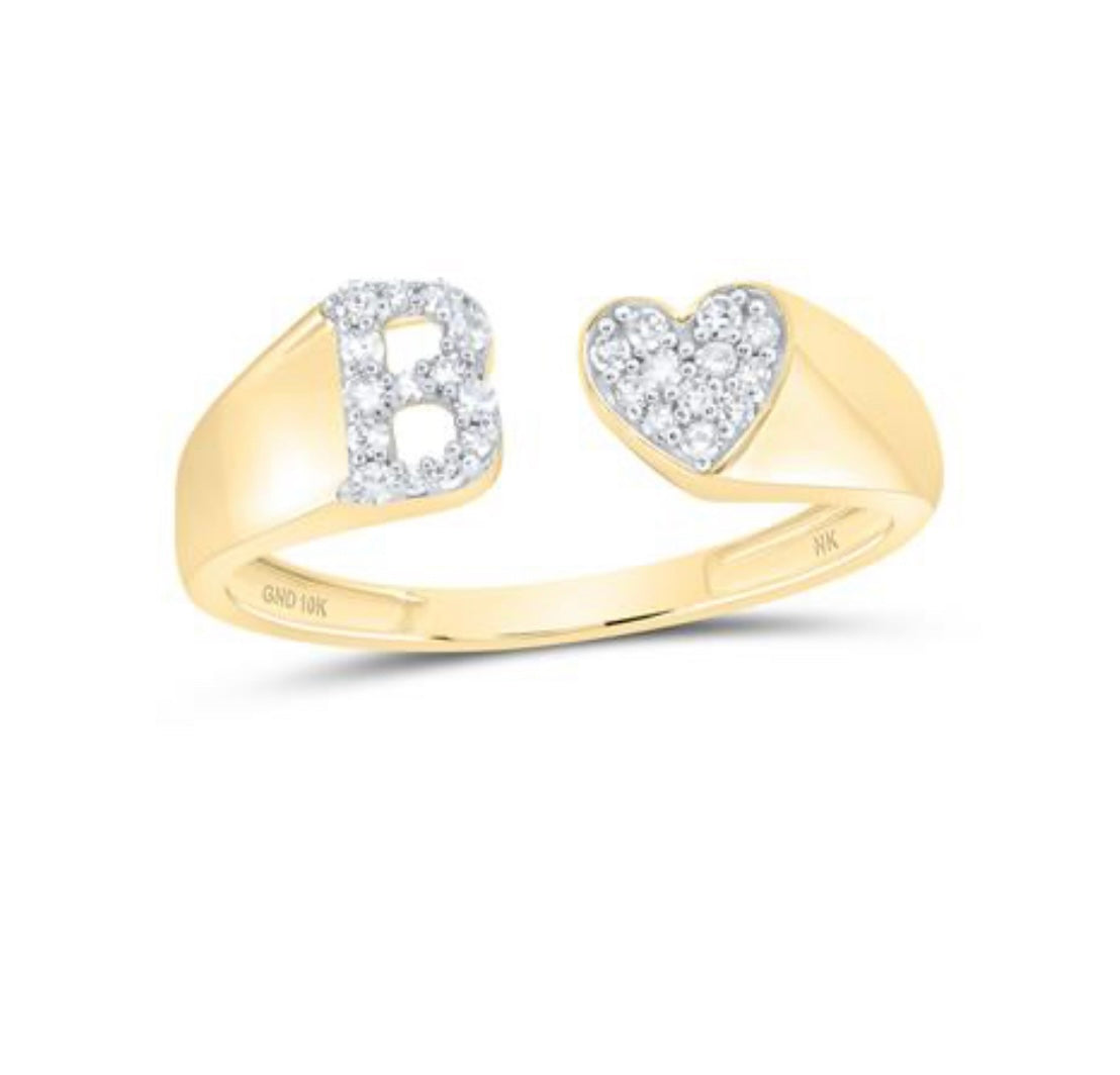 Diamond Initial Heart Ring – 14K & 10K Gold | Natural Diamonds