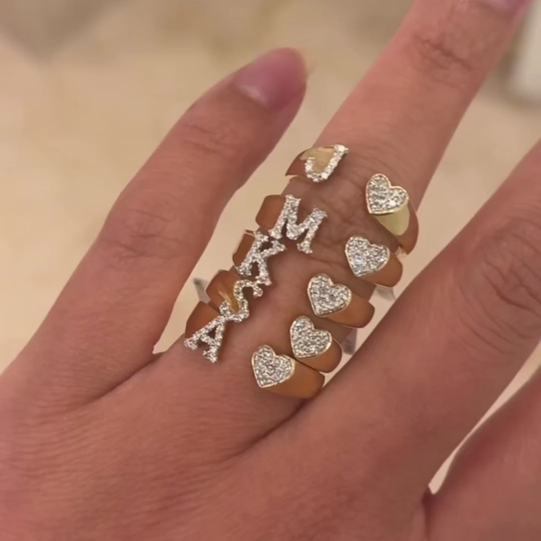 These diamond initial rings are crafted in your choice of 14K or 10K solid gold and feature genuine natural diamonds set in a dainty uppercase letter paired with a pavé heart.
