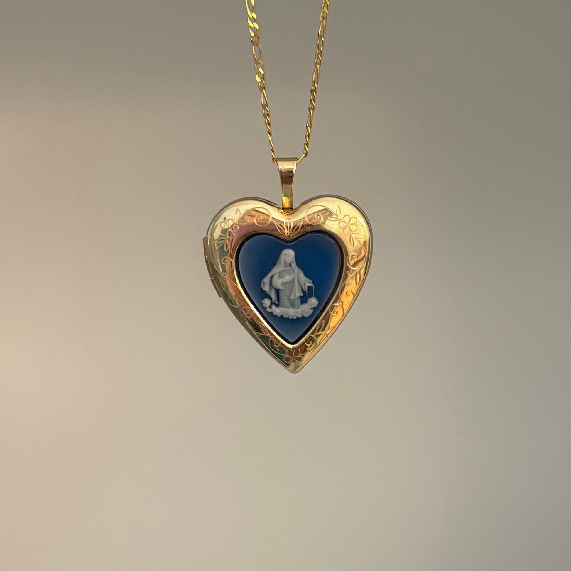 14K Gold Heart Locket with Virgen María Relief (Nuestra Señora de la Gracia)