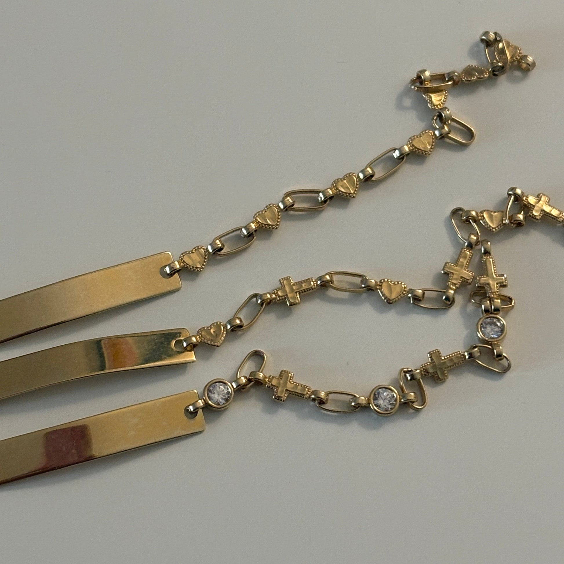 14K Gold ID Bracelets — Hearts, Cross & CZ, or Cross + Hearts (Engraving Included)