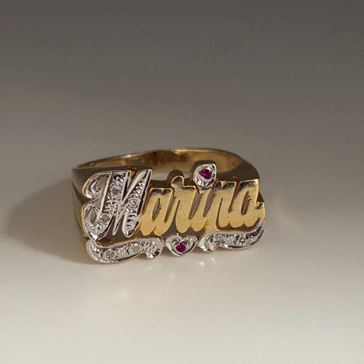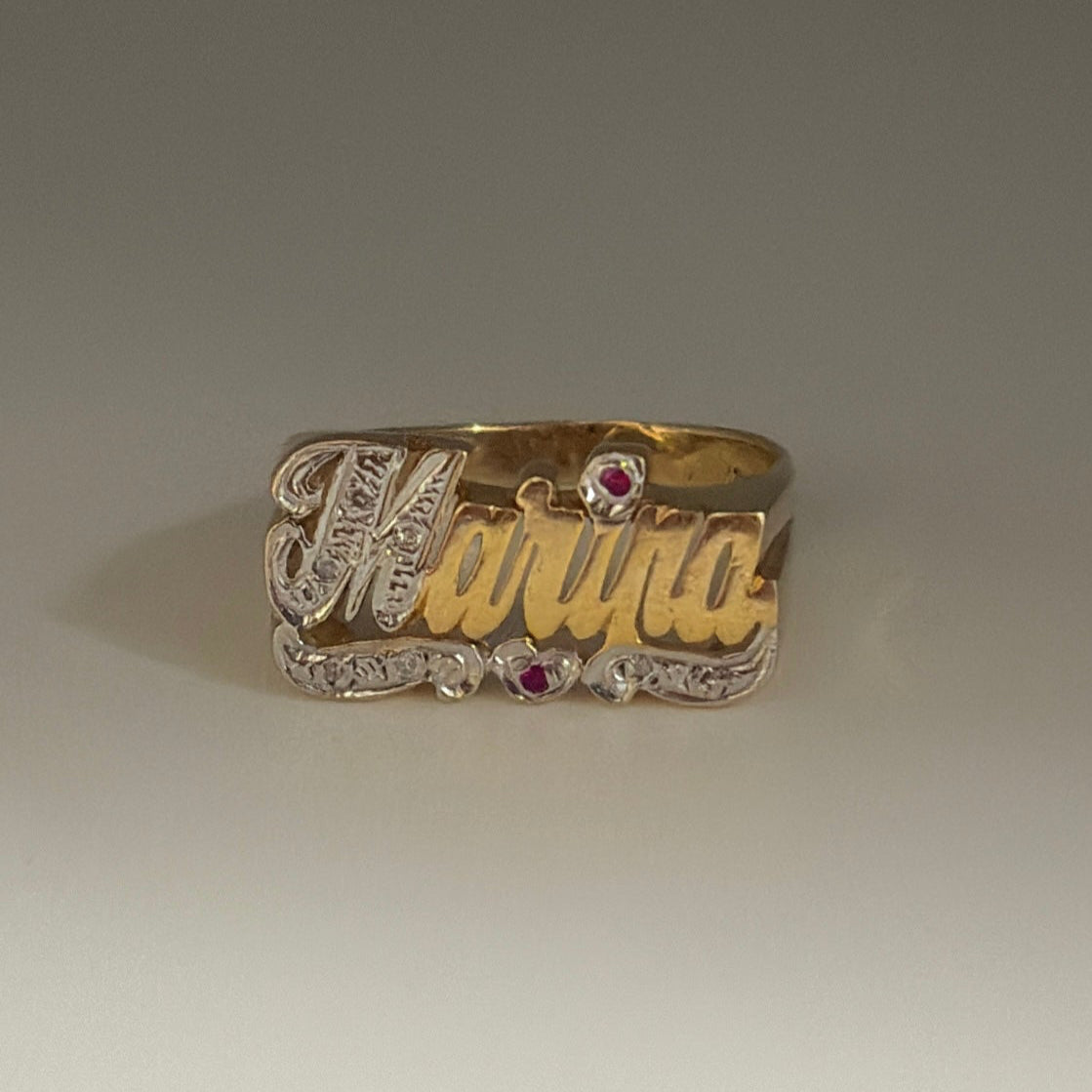 Vintage “MARINA” Name Ring -14K Gold with diamonds