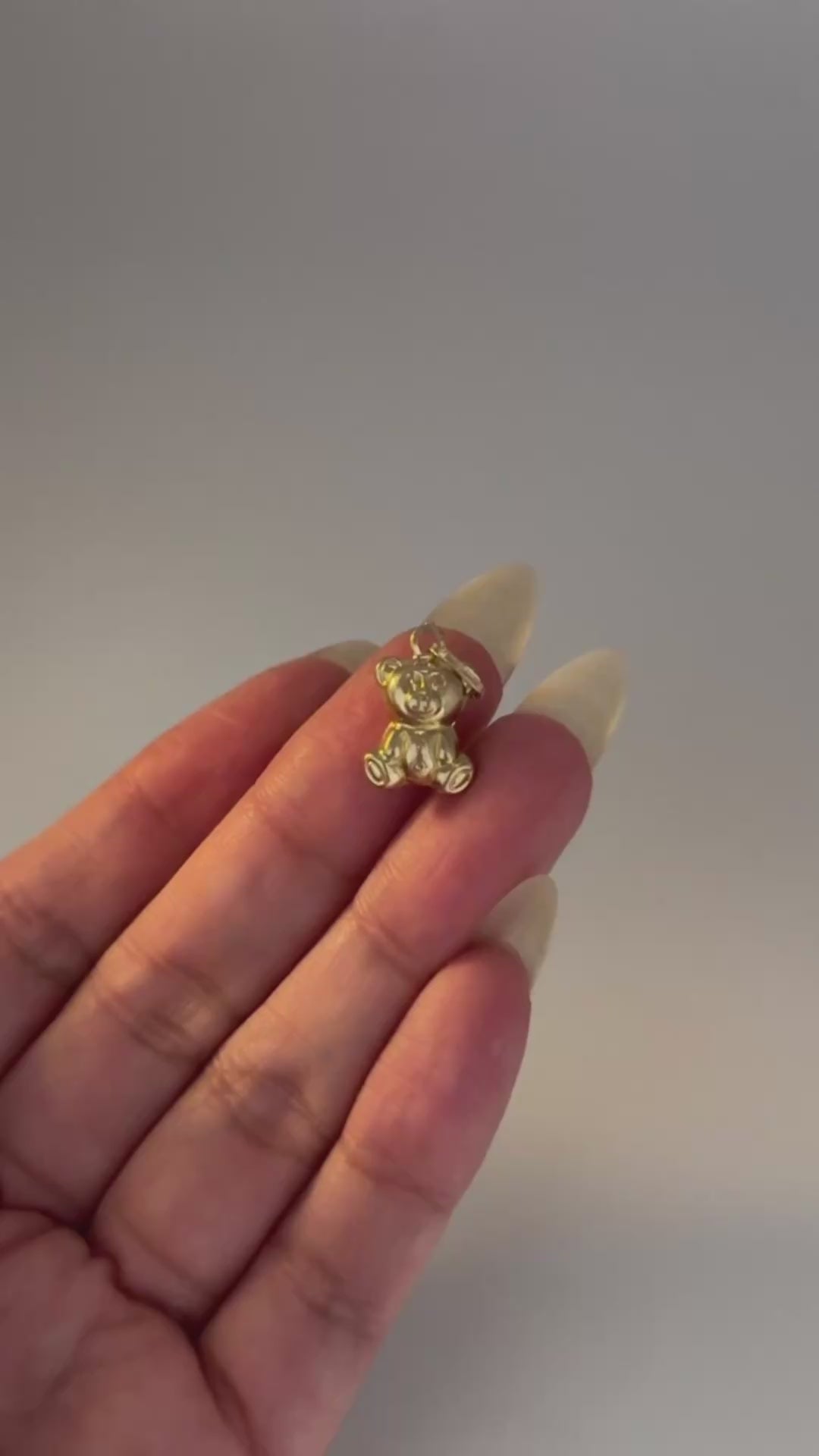 This puffy 14K solid gold teddy bear charm is full of personality and shine! Designed in a 3D style, it features a sweet little face on the front and detailed back—just like a real teddy. The charm is hollow yet beautifully crafted for a lightweight but bold look. Perfect for adding a playful touch to your charm stack or gifting to someone special.