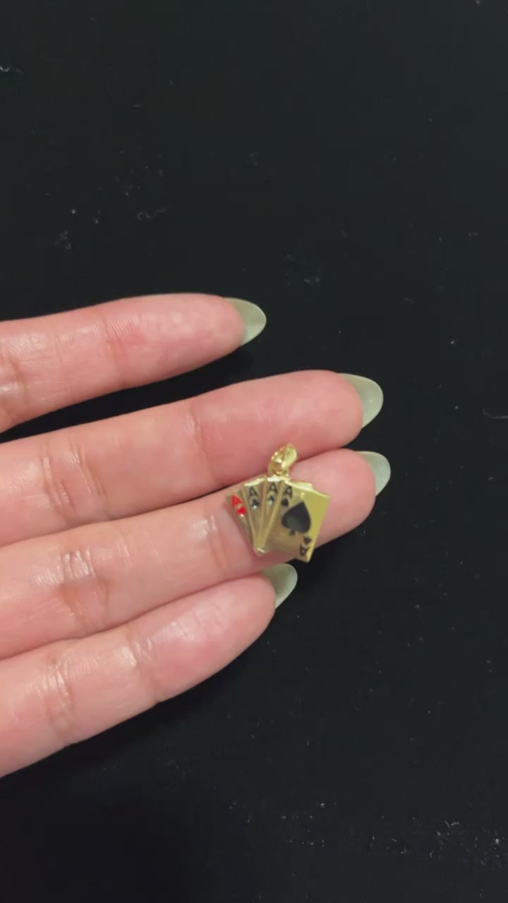 Hit the jackpot with this bold and stylish 14K yellow gold Four Aces playing card pendant. Featuring vibrant enamel details, this charm is perfect for card players, poker fans, and anyone who loves a lucky hand. A fun yet luxurious piece to add to your collection or gift to a fellow card enthusiast.