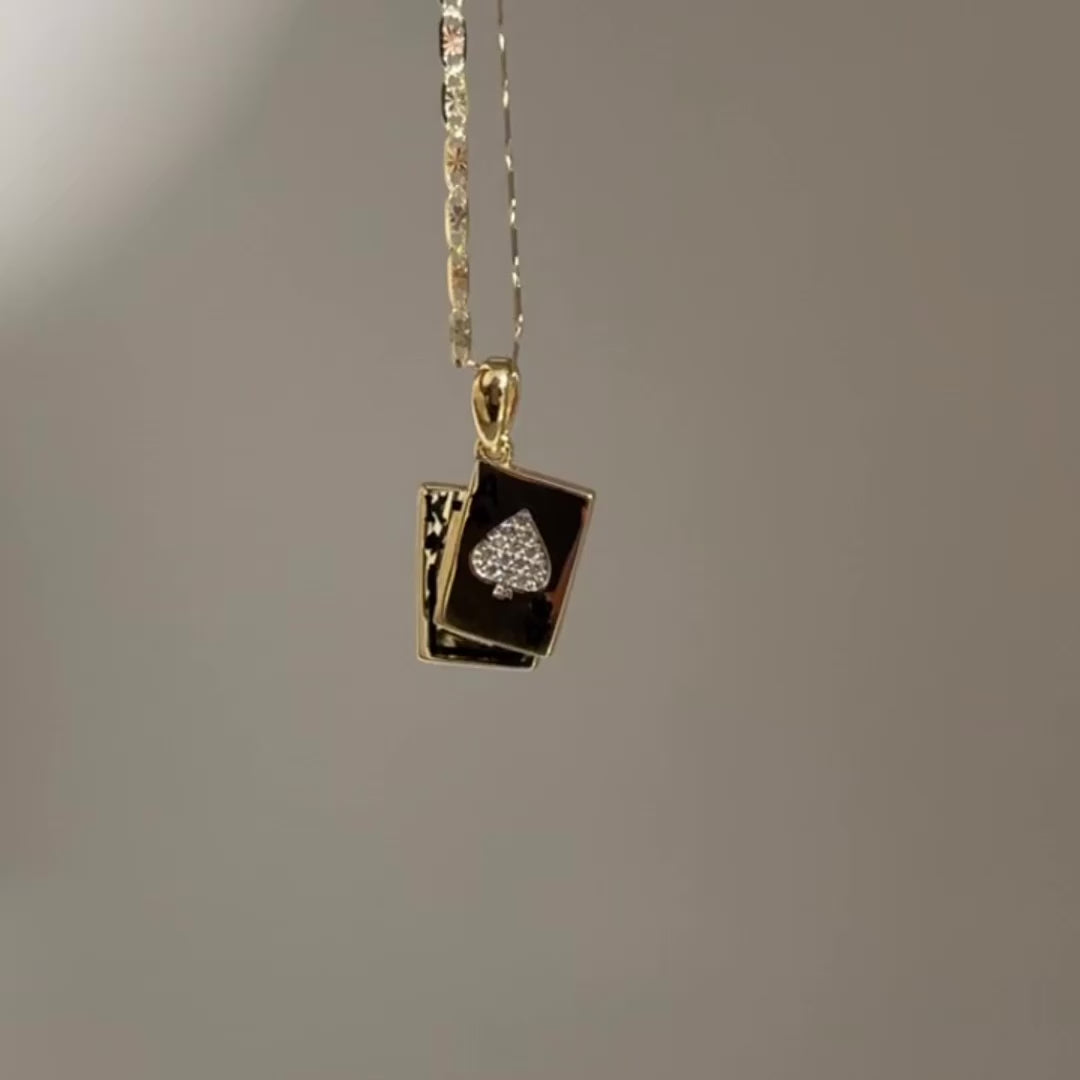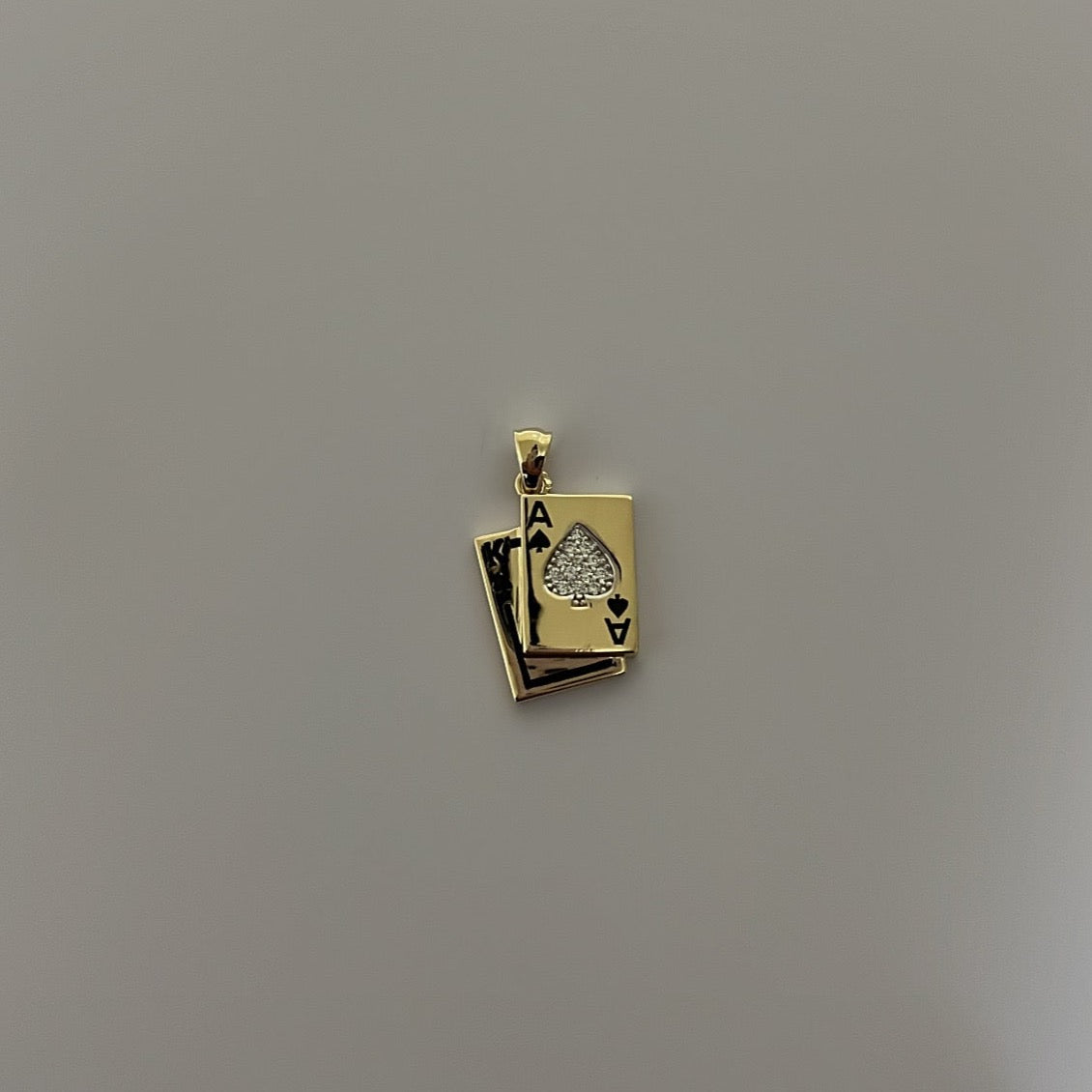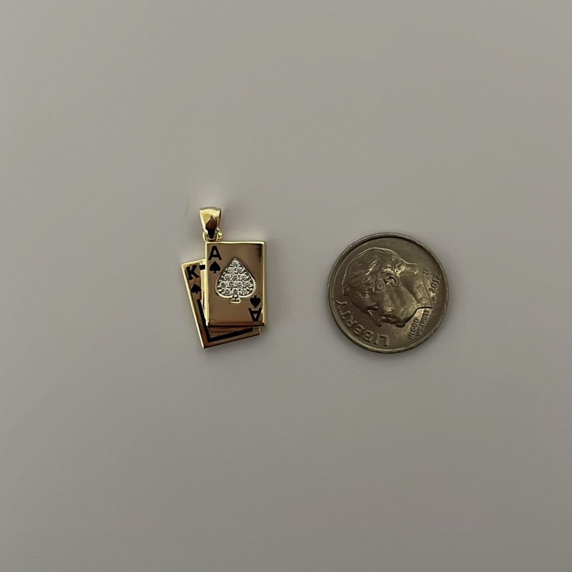 14K Yellow Gold Ace & King Spade Poker Card Charm – Enamel & CZ