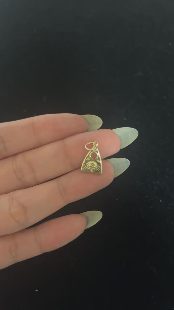 Channel mysterious vibes with this 14K yellow gold planchette charm. Inspired by the iconic spirit board pointer, this piece is perfect for those who love mystical symbols, gothic style, or unique collectible jewelry. Its smooth, polished finish makes it both edgy and elegant, ideal for layering or wearing solo.