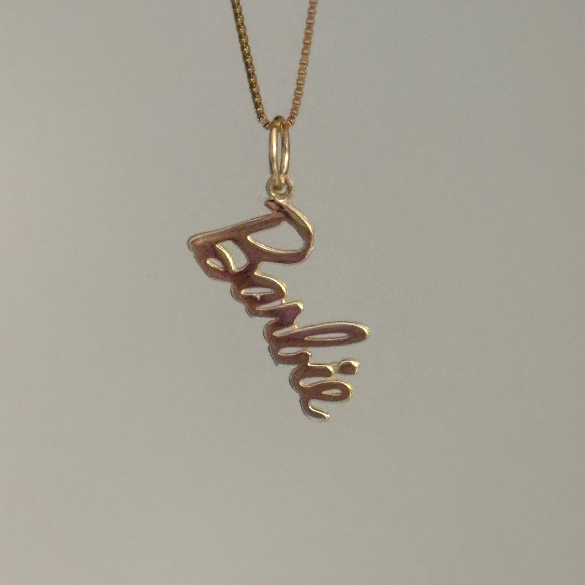 Bring back the iconic Barbie vibe with this adorable 14K yellow gold script charm. Perfect for adding a fun, girly touch to your necklace or charm bracelet. Lightweight, shiny, and super cute — a perfect gift for any Barbie lover.