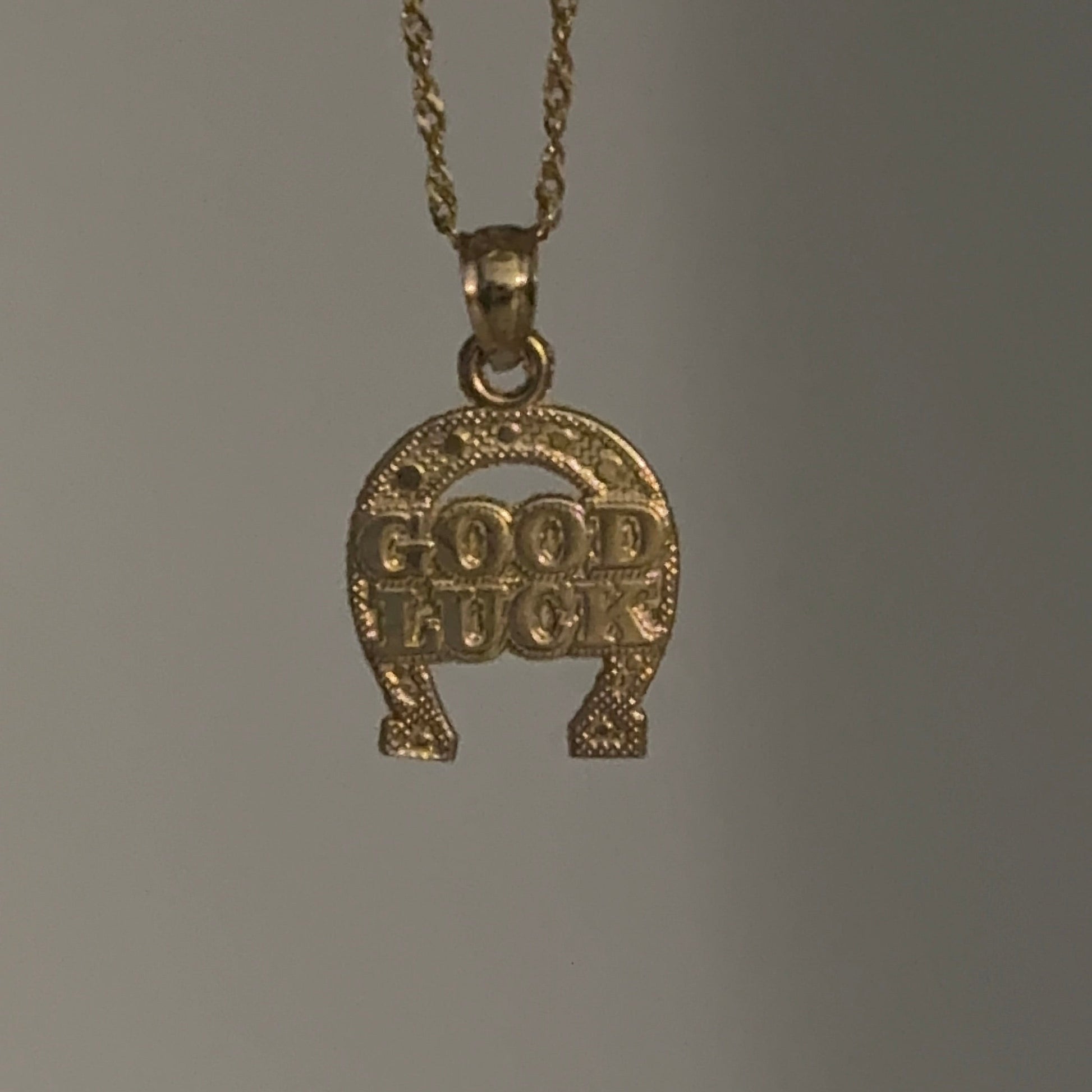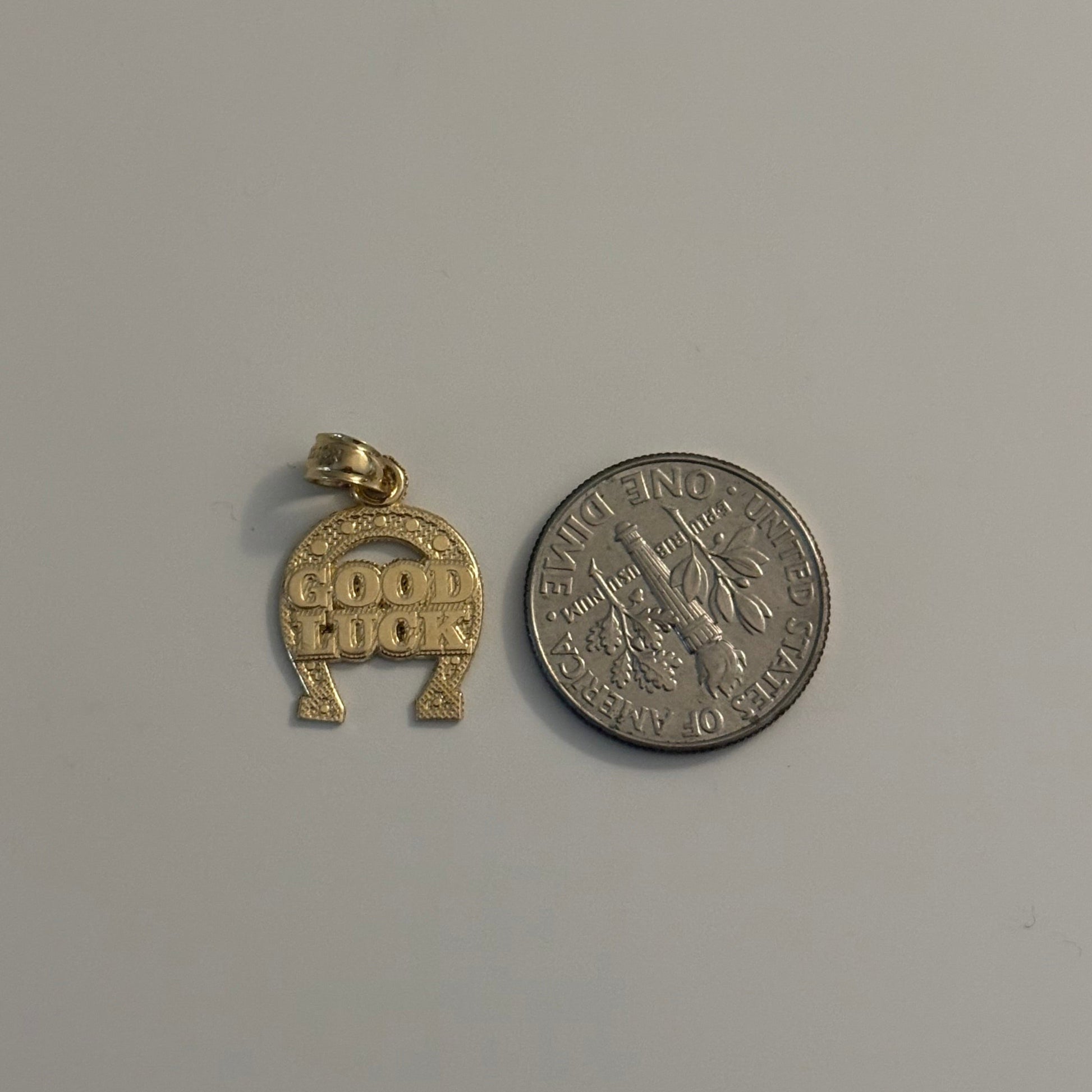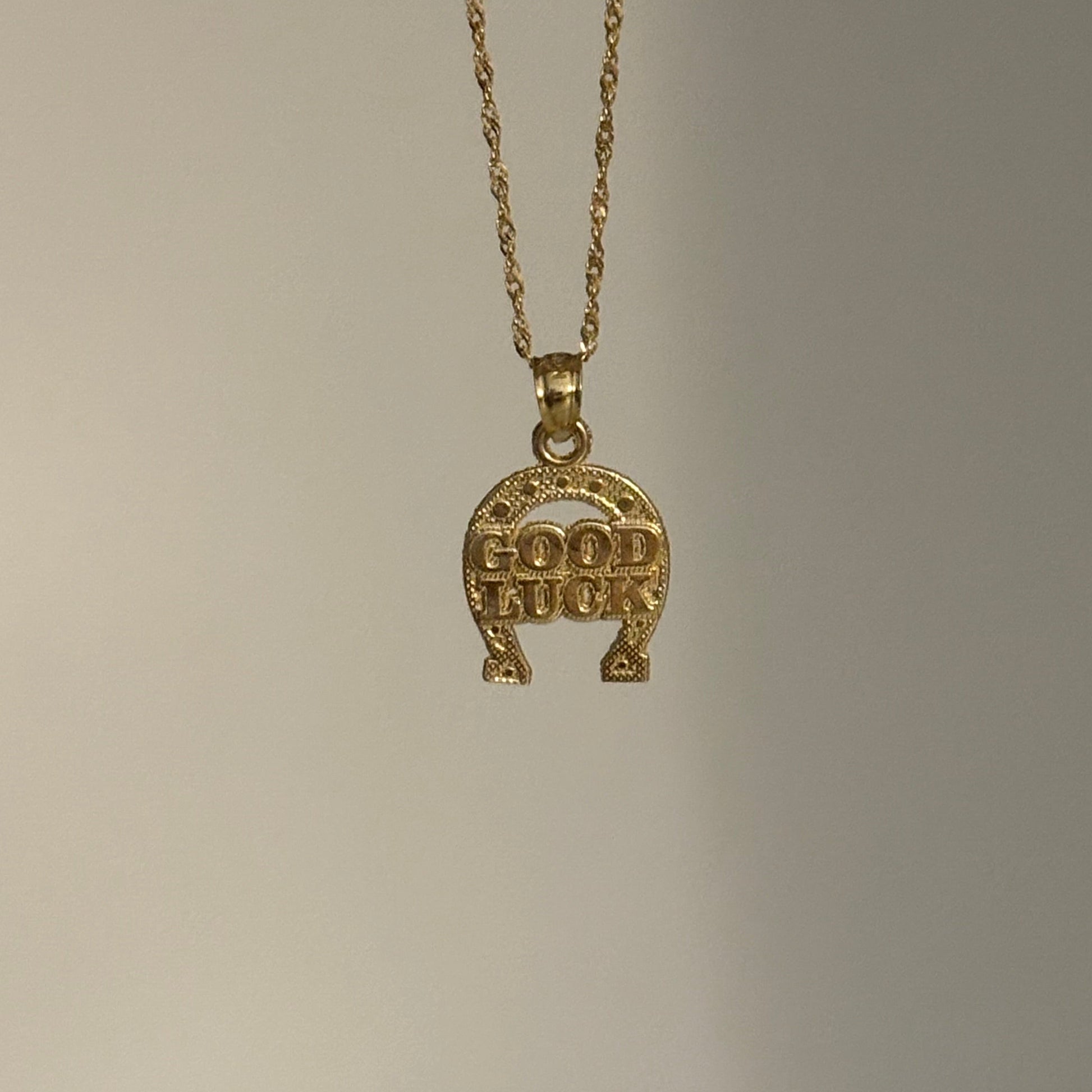 Carry a timeless symbol of fortune and protection with this vintage 14K yellow gold horseshoe charm. Featuring the words “GOOD LUCK” inside the horseshoe design and delicate detailing along the edges, this piece is both meaningful and stylish. Lightweight yet durable, it makes the perfect addition to a charm collection or a thoughtful gift for someone special.