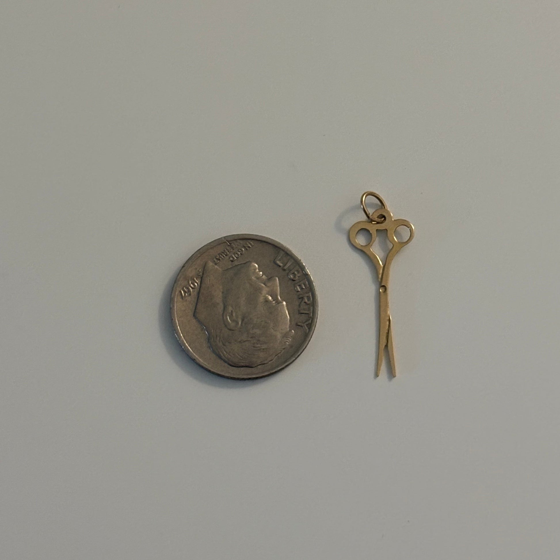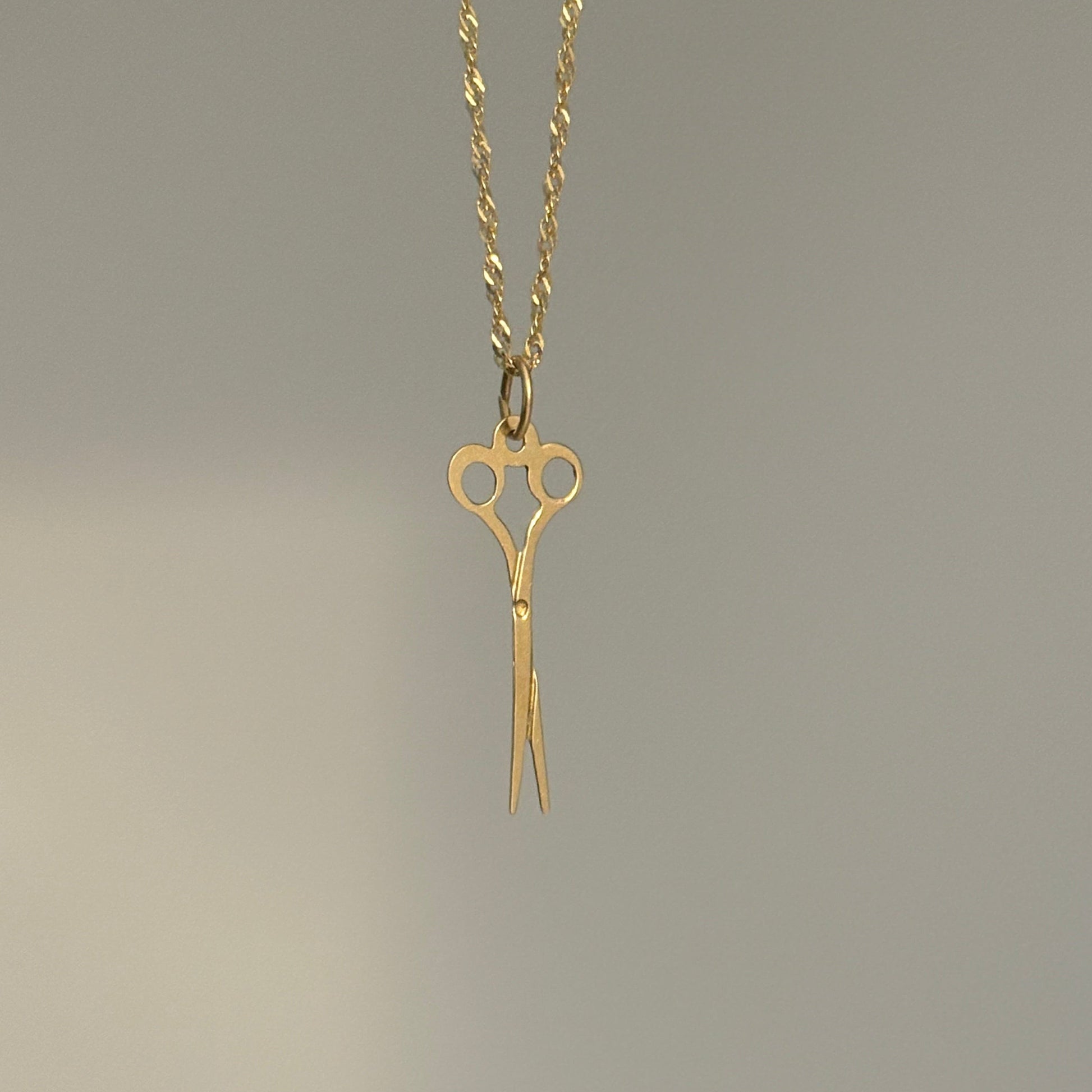 A delicate solid 14K yellow gold scissors charm ✂️ perfect for hairstylists, barbers, and beauty lovers. This miniature pendant is lightweight yet meaningful, designed with a tiny bale to fit a thin, dainty chain. A thoughtful gift or a personal keepsake to celebrate your craft.