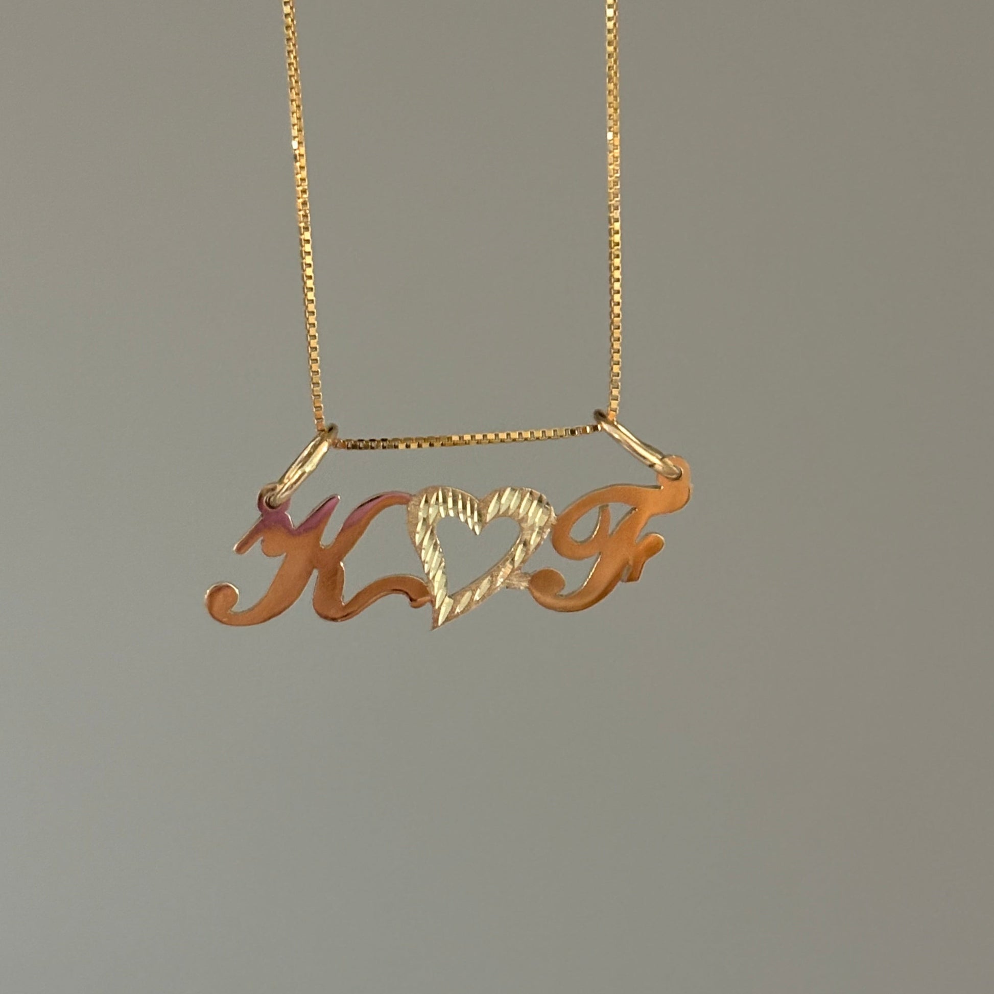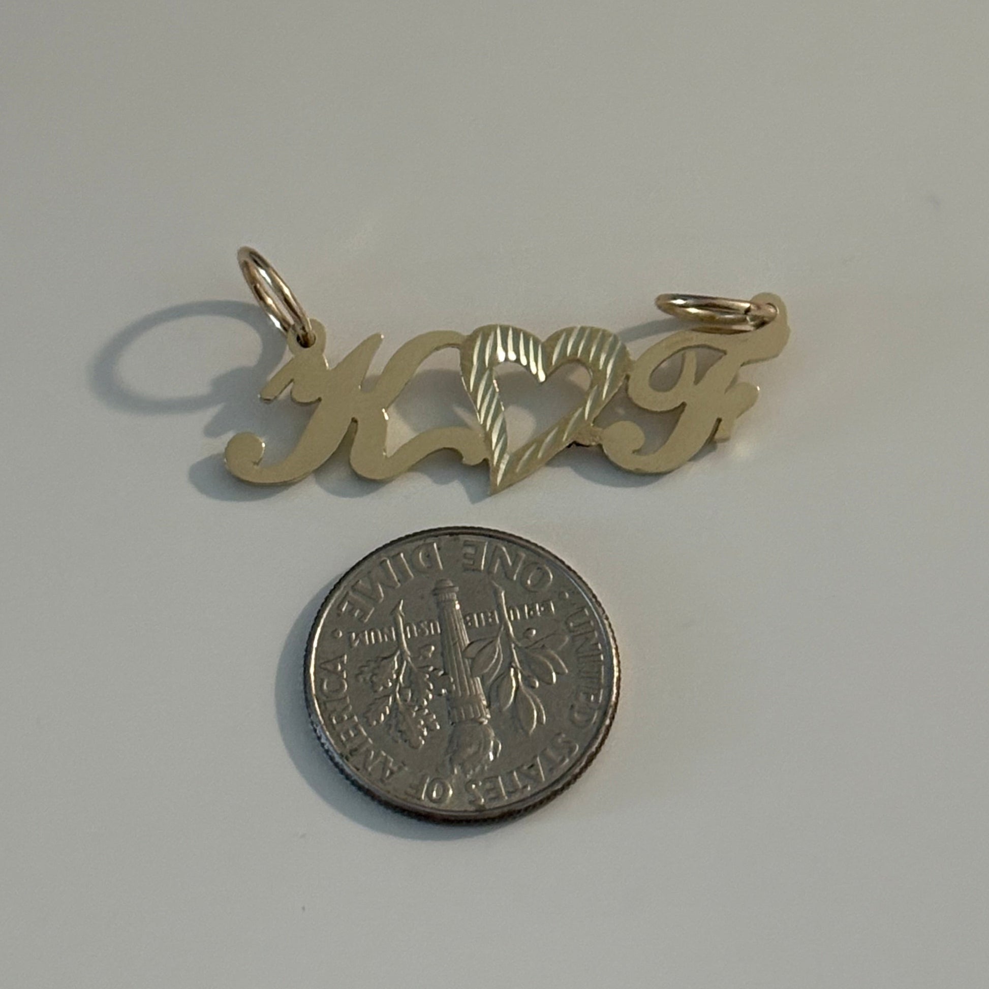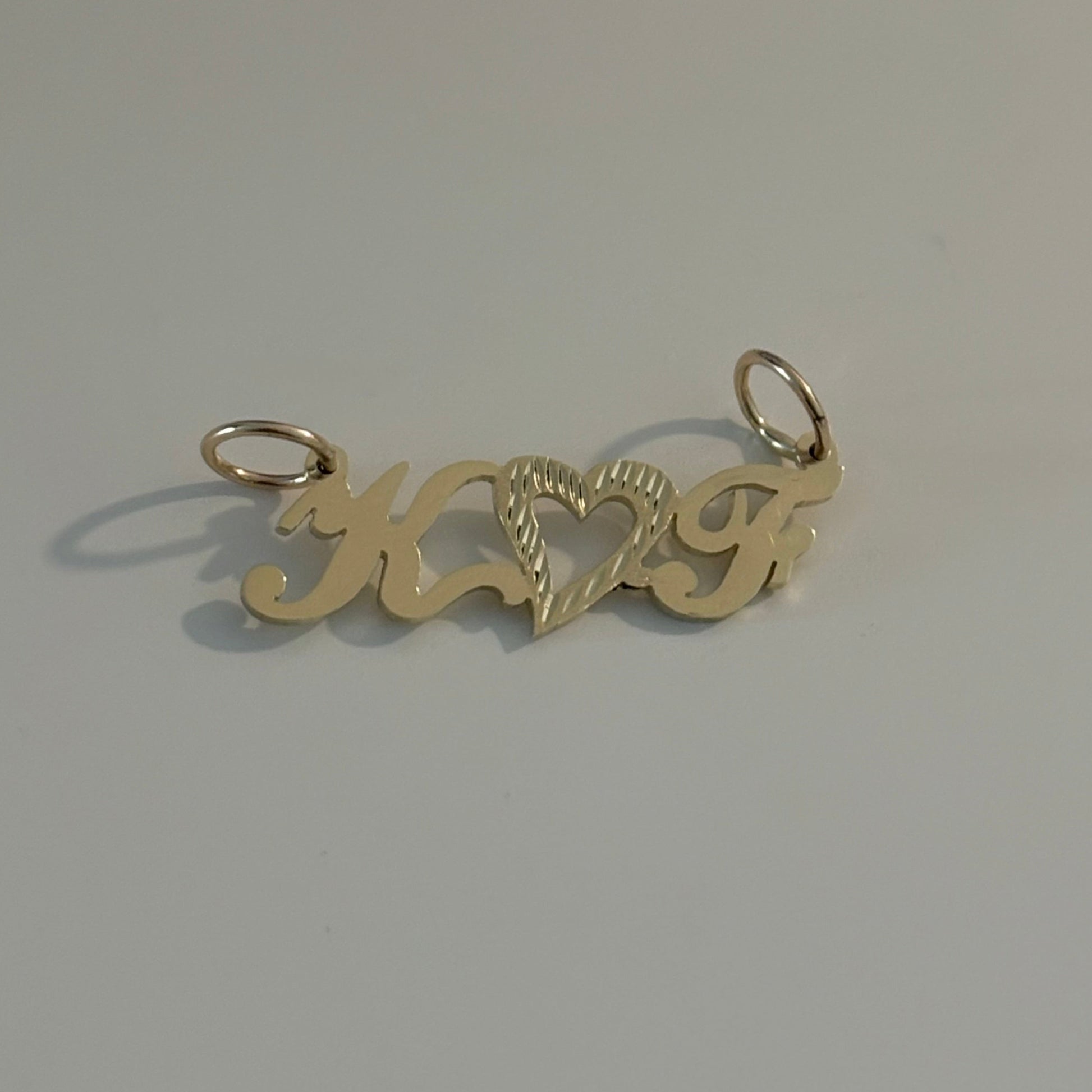 Custom 14K Gold Initials & Heart Nameplate Charm