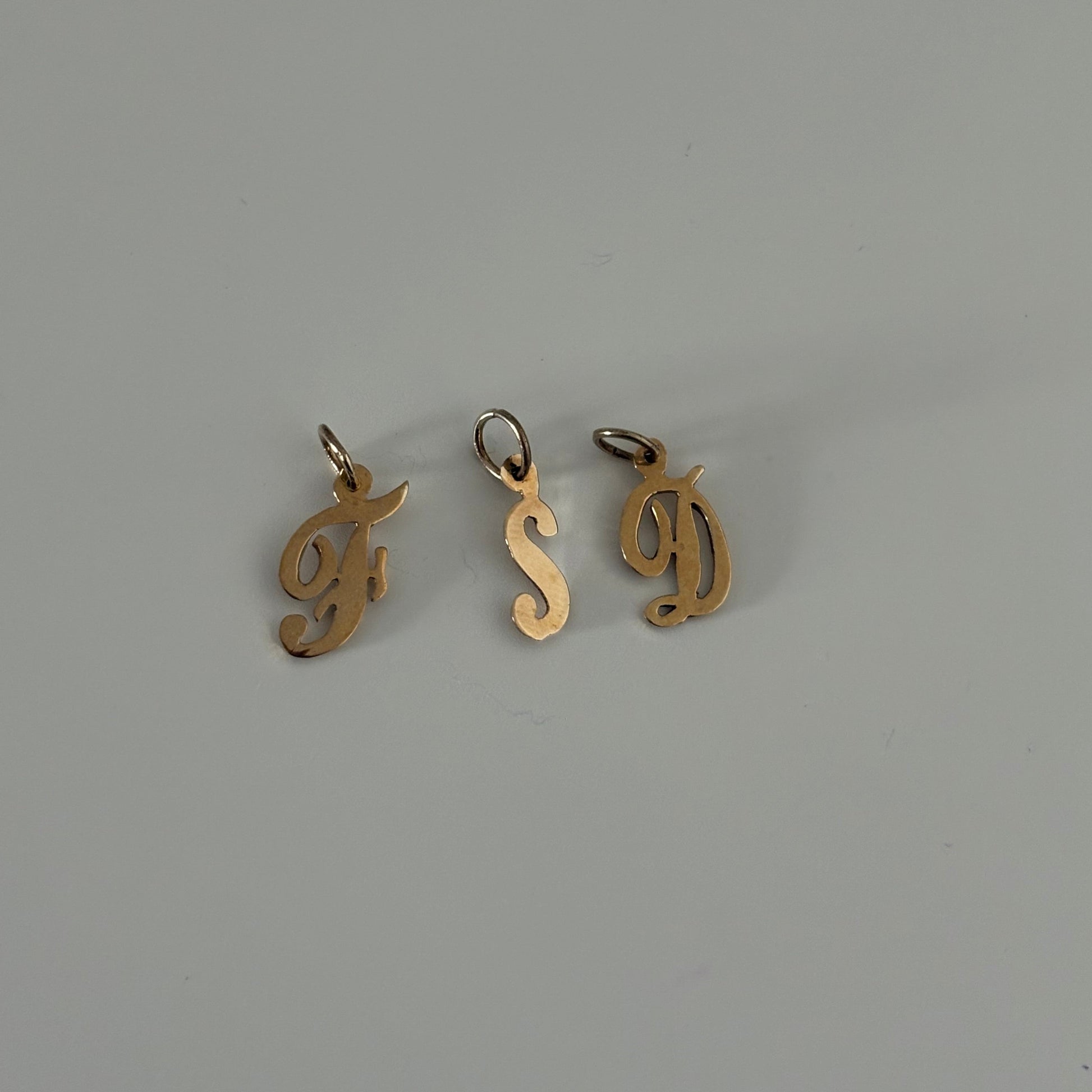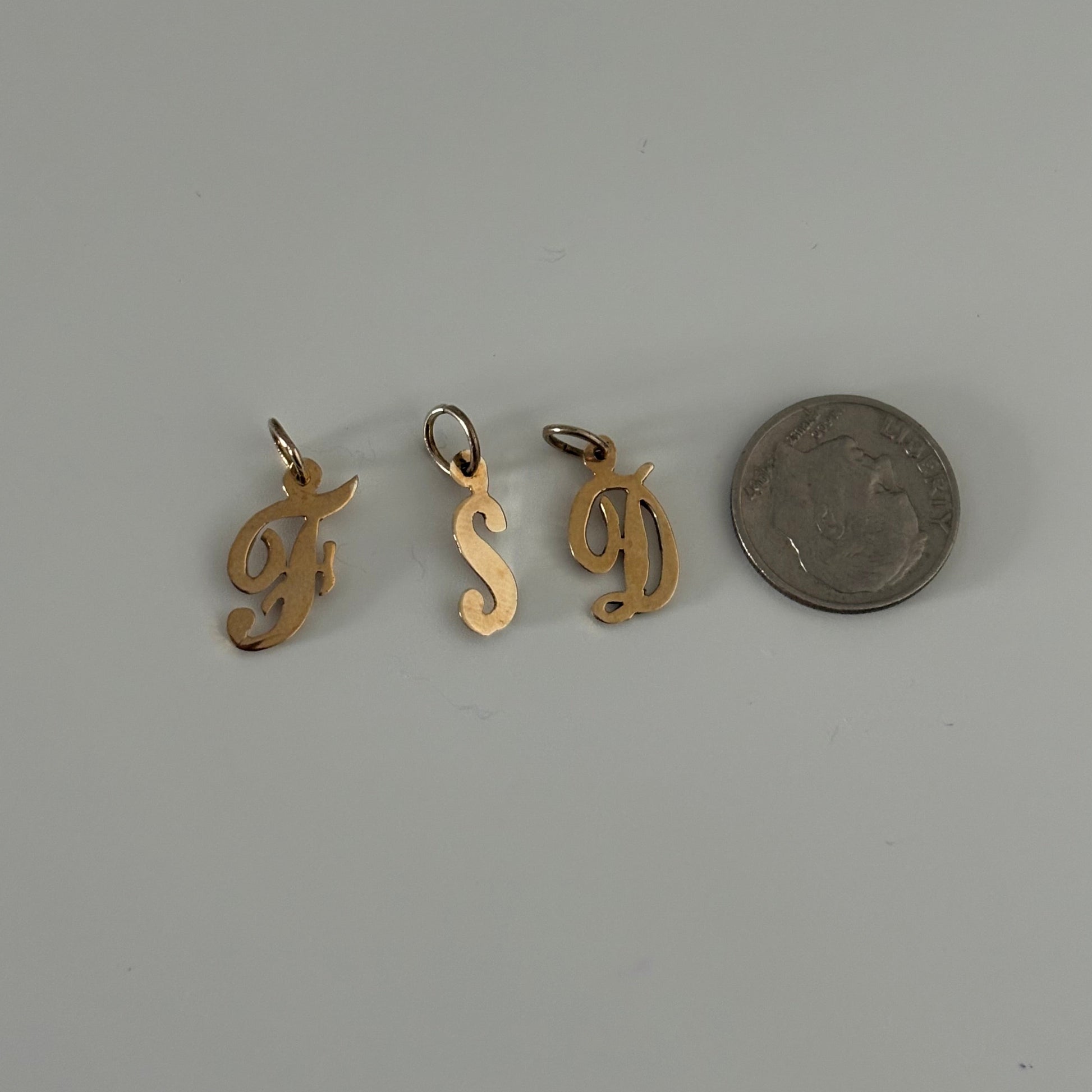 Script Initial Charms — F, S, D — 14K Yellow Gold