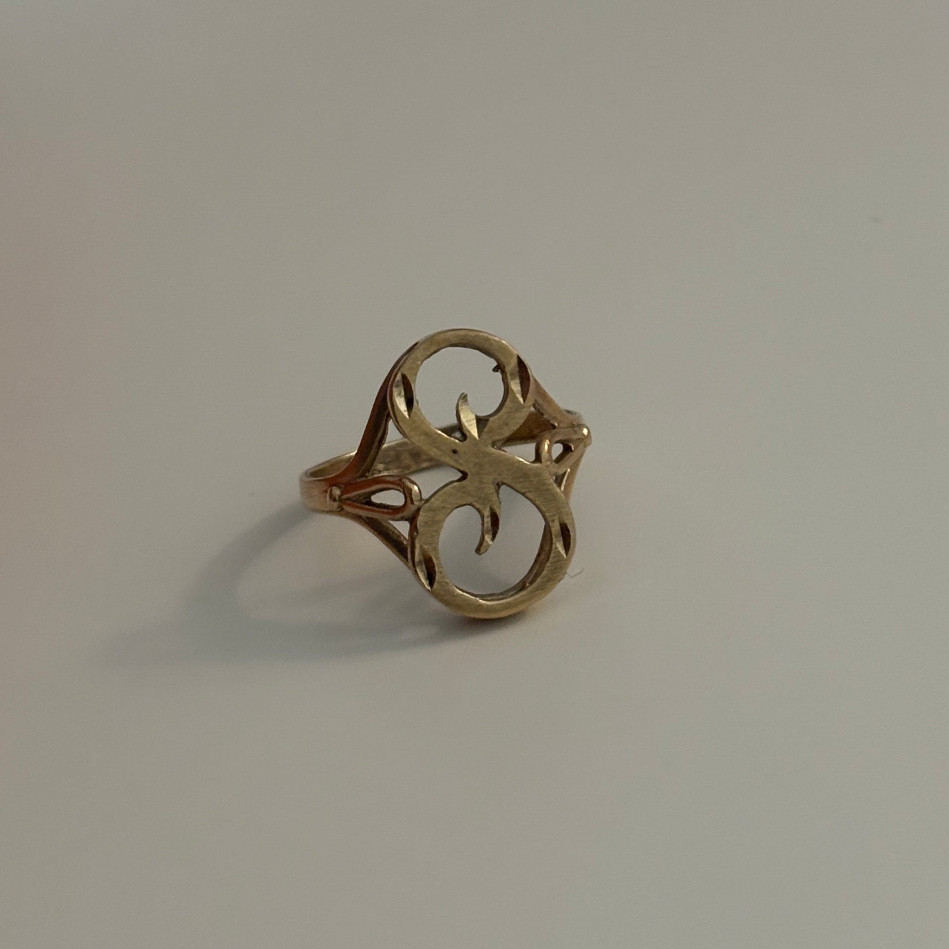 A classic vintage 14K gold “S” initial ring featuring graceful openwork details and timeless charm. Its petite size and sturdy weight make it perfect for pinky wear or layering with your favorite stack.