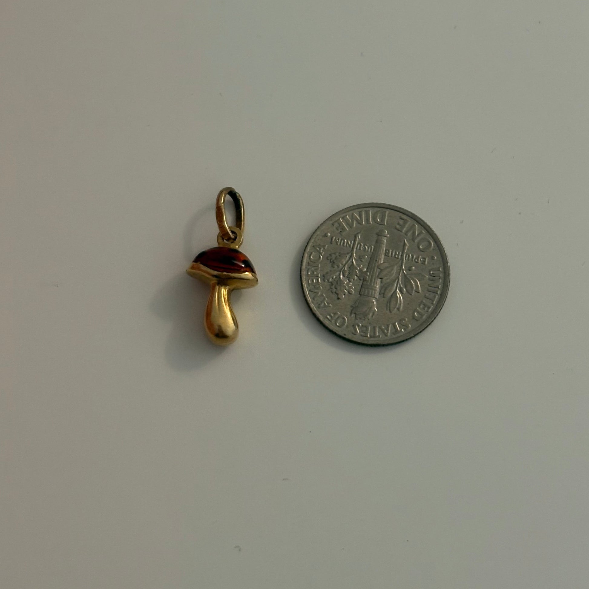 Vintage 18K Gold Mushroom Pendant with Red Enamel